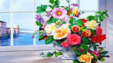 Картина по номерам «Букет на окне с видом на море» размером 40x50 см см. купить по выгодной цене 650 ₽ с доставкой по Москве и всей России.